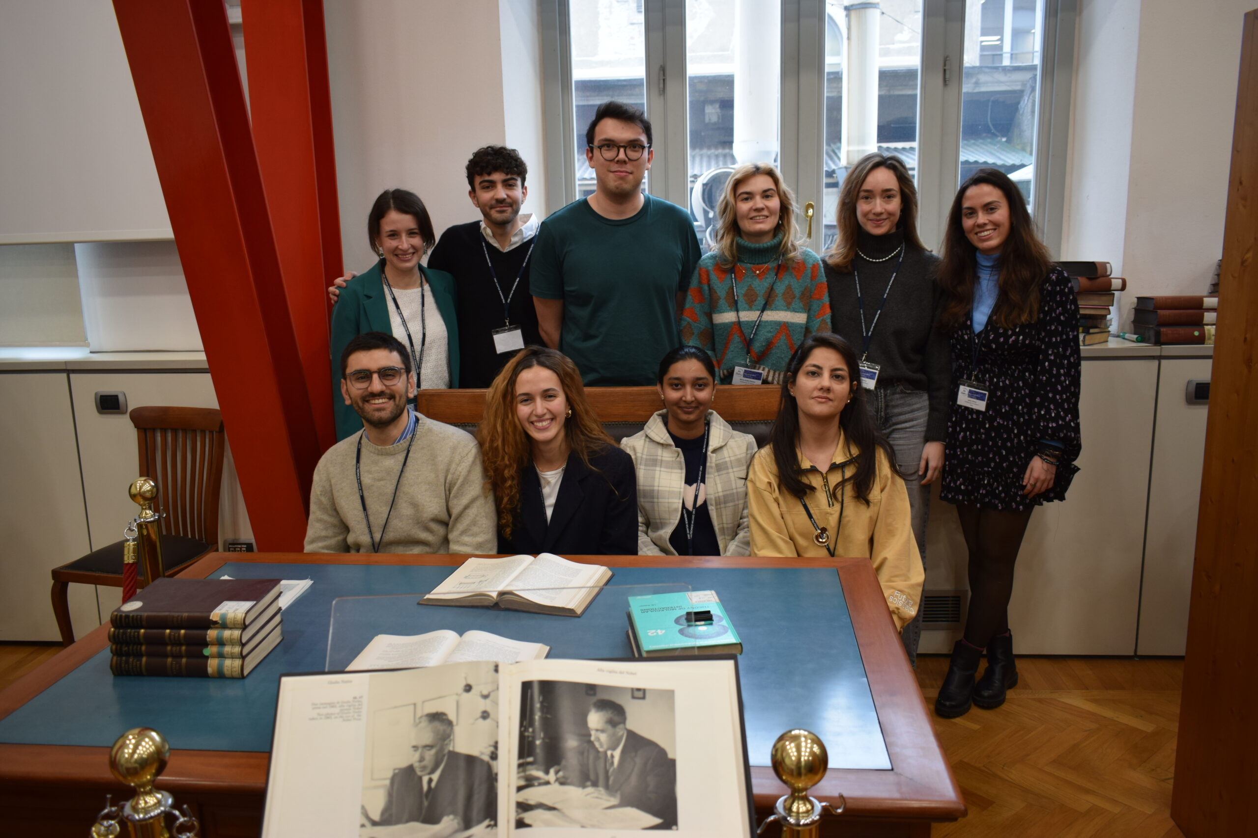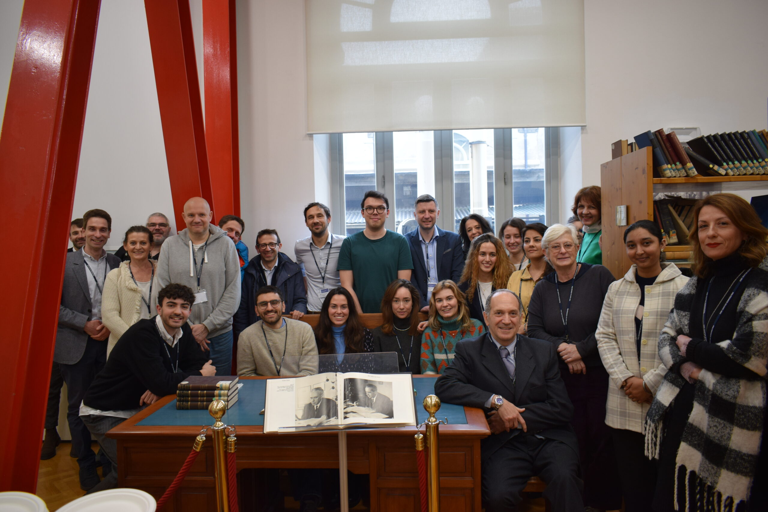 The Doctoral Candidate Research team behind the Nobel Pize Profesor Giulio Natta’s desk.