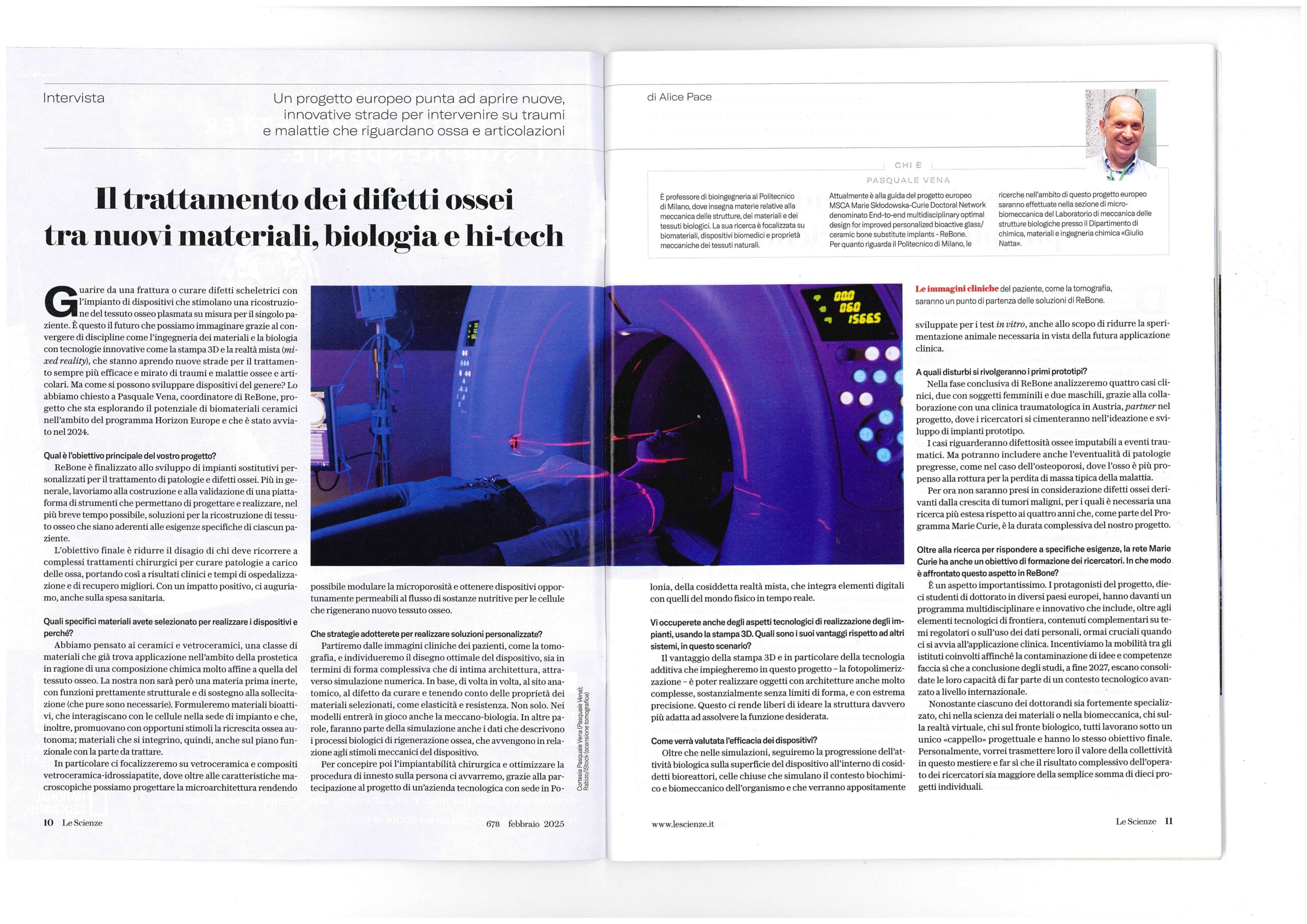 In an interview with scientific writer Alice Pace, Pasquale Vena illustrates how the MSCA Marie Sklodowska-Curie Doctoral Network project ReBone and its team of 10 young Doctoral Candidates, want to use advanced technologies like mixed reality and 3D printing to create customized implants that promote bone tissue regeneration in order to help with the clinical treatment of bone defects.